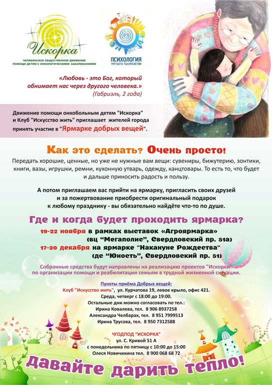 Вы можете прийти на ярмарку, пригласить своих друзей и за пожертвование приобрести оригинальный подарок к любому празднику – вы обязательно найдёте что-то по душе.