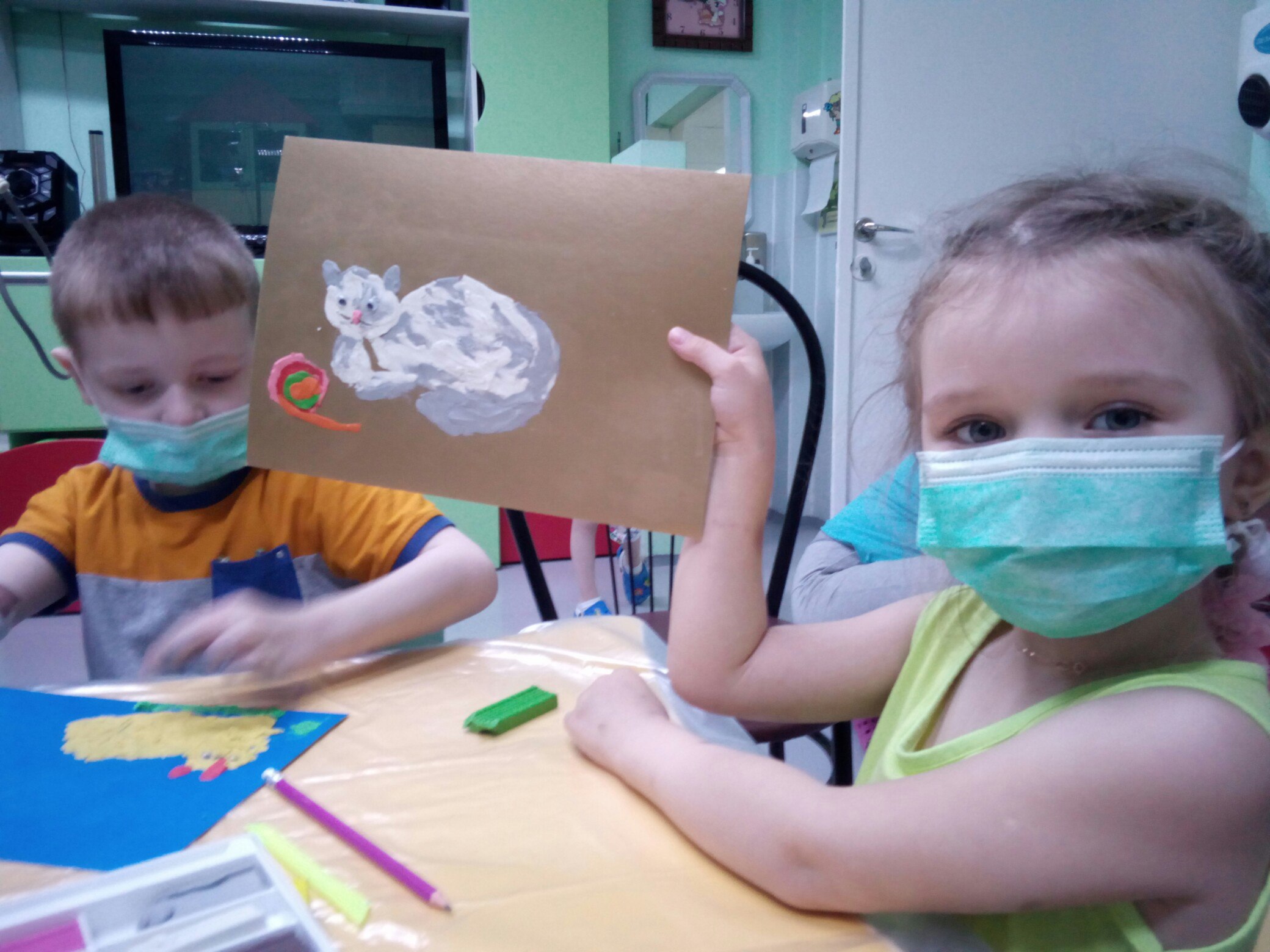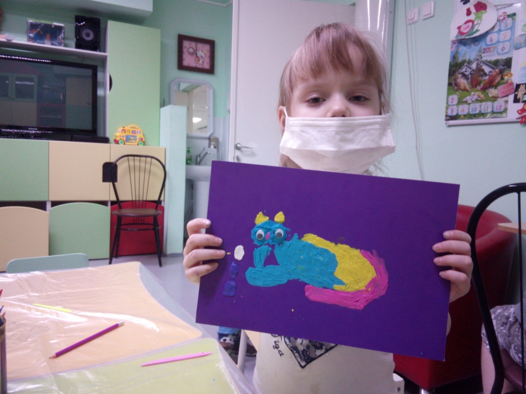 Каждую неделю в детском отделении проходит какой-нибудь творческий мастер-класс. На этот раз была живопись акварелью. Интересный вариант работы с этими красками – дать растекаться акварели во все стороны, и вот листья, ветки, деревья нарисовались сами собой.