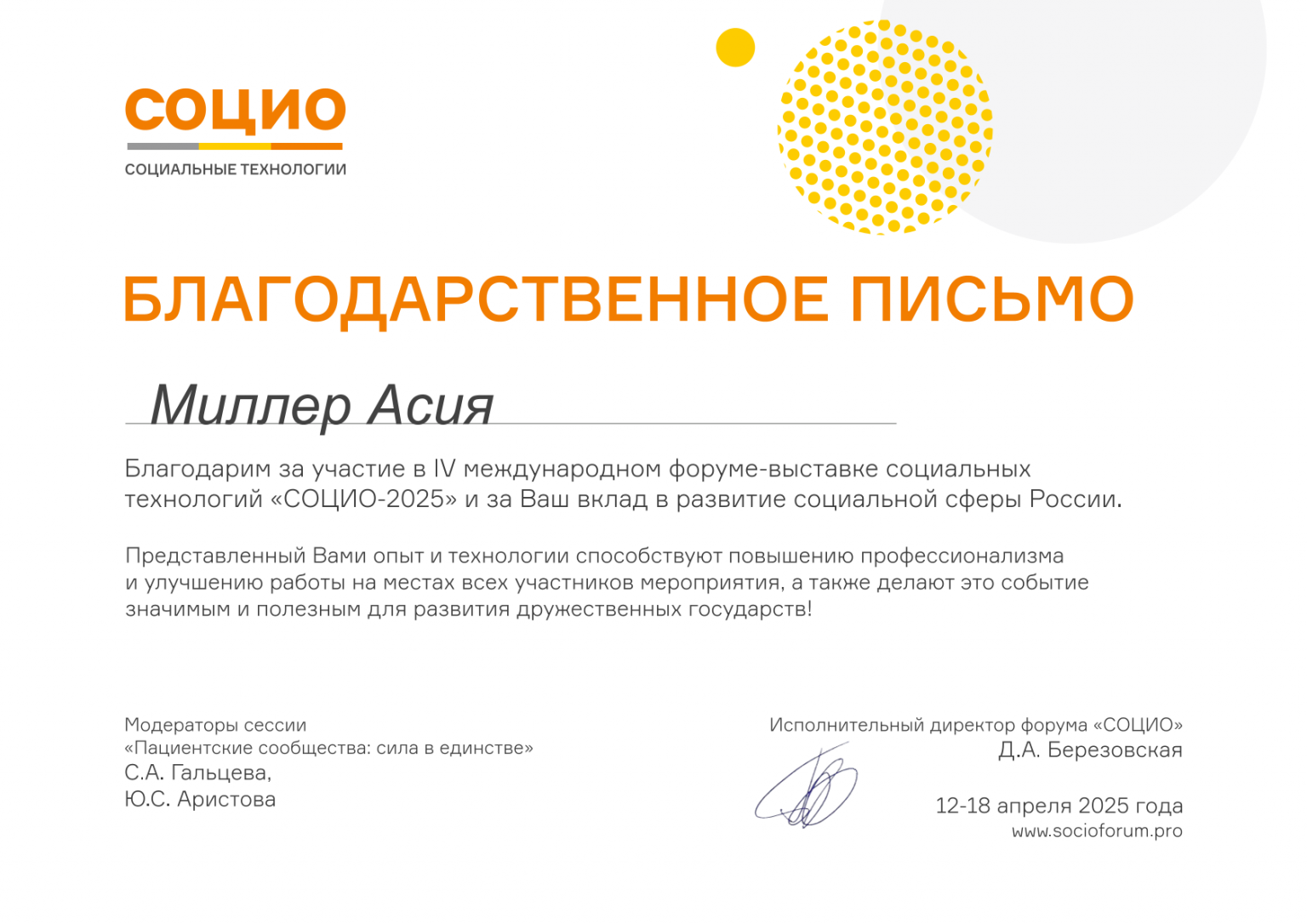 Награды Асии Миллер