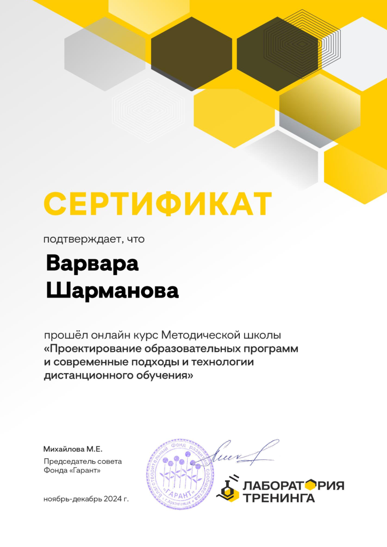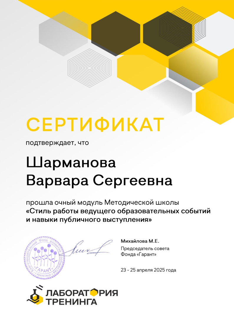 Награды Варвары Шармановой